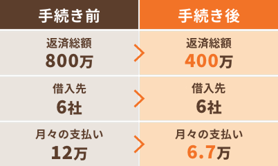 対応いただいたところ、なんと月々の返済が6万円から3万円に!無理なく返済ができるようになり、借金を重ねる心配もなくなりました。もっと早く相談していれば良かったと思います。