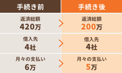 少しでもが返済総額が下がれば……と思っていましたが、結果は予想を大きく上回り、200万円まで減額することができました!もう二度と借金で悩む毎日には戻りたくないので、これを機に浪費グセを直し、堅実に生活していこうと思います。